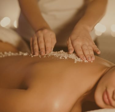 Un tratamiento que elimina células muertas, suaviza la textura y prepara la piel para absorber nutrientes. Se utiliza exfoliante natural para dejar el cuerpo luminoso, uniforme y renovado. Ideal antes de cualquier ritual corporal o como preparación para verano.